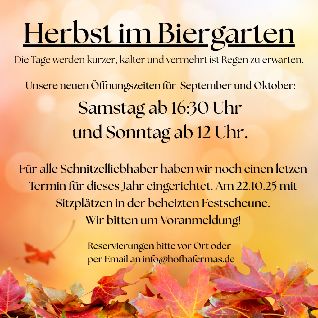 Aktuelle Termine, wie bspw. für unser Schnitzel-Essen, teilen wir zusätzlich Online auf Instagram und Facebook. @Hof_Hafermas